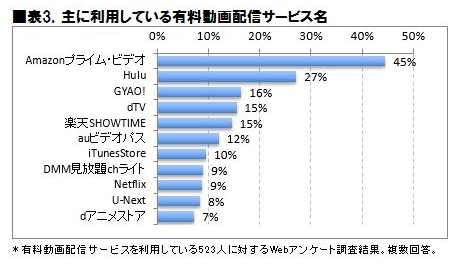 排名第三的是日本有线电视广播公司USEN旗下的GYAO!。坐拥9300万付费会员,横扫北美的Netflix在亚洲则显得有些水土不服,在调查中仅排在第九位。