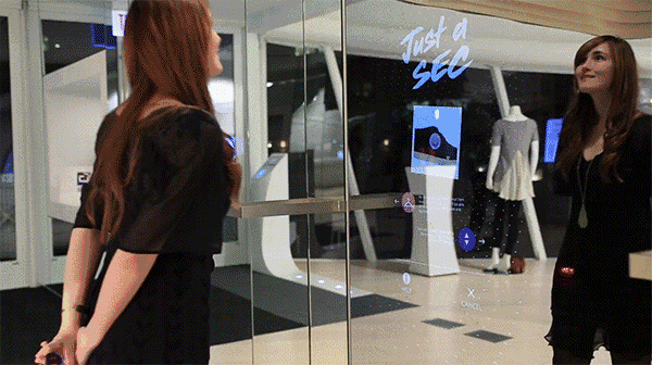 当消费者有试衣需求时,交互式的商品信息就会直接显示在智能试衣镜上面,智能试衣镜能够根据消费者所选择的的商品提出建议和搭配商品信息。如果消费者希望试穿其他商品,只用在智能试衣镜上面点击相关按钮,商品便可以通过可移动橱柜送达。无需排队的自动结账台,可自动结算出商品总价,便于消费者自助购物。