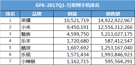 仅以互联网手机品牌出货为例,从GFK今年Q1单品牌出货数据来看,荣耀1052.2万台,小米945万台,魅族460万台,单价分别为1418元,1328元,1133元,荣耀的单品溢价能力明显处于优势。