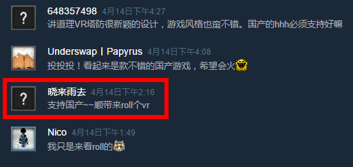 今天,小编浏览Steam青睐之光的时候,来到了一款国产VR游戏的页面。从一大堆支持的留言里,无意间发现了游戏作者也来为自己的游戏留言。