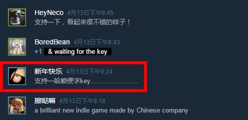 比如,给玩家们提供游戏激活码,然后就有了一些耿直的Steam玩家的留言。