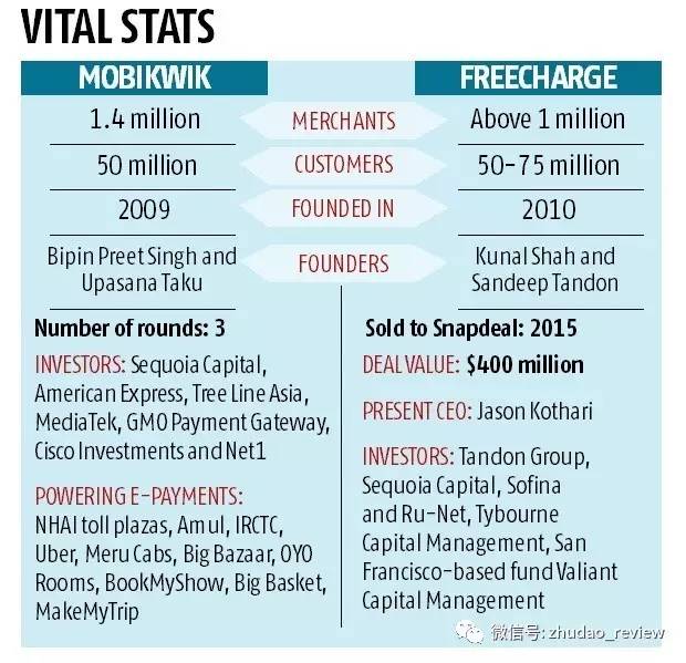 与一路高歌猛进的paytm相比,在行业排名第二和第三位的FreeCharge和Mobikwik处境则稍显尴尬。自从2015年4月被印度第二大本土电商平台Snapdeal以4亿美元收购以来,FreeCharge一直在寻求新一轮融资。