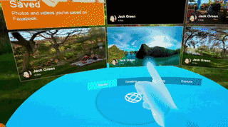 戴上Oculus Rift头显,登录到您的Facebook帐户之后。你可以看Facebook的视频、在360°照片和视频中左看右顾、自拍、或者和最多3个好友进入同一个3D空间。
