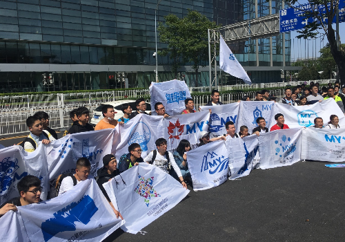 图:魅蓝E2发布会聚集在场外拍合影的魅族粉丝