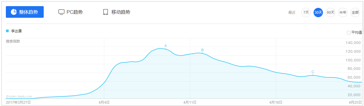 不论是百度指数还是微信指数都显示,4月4号左右,达康书记的“命运”开始改变,0开始不再是0。可是为什么是这天?没有更早或更晚?
