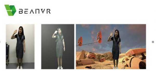 比如,BeanVR实现MR成像技术,非常快速地把人脸扫描出来,然后再把真实的人的三维体态去还原到虚拟空间中去。