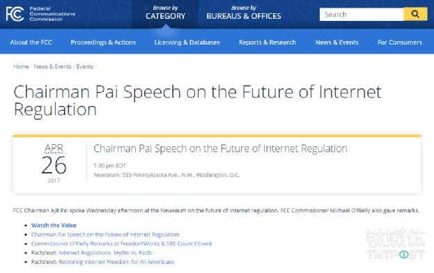 https://www.fcc.gov/news-events/events/2017/04/chairman-pai-speech-future-internet-regulation