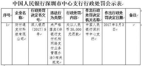 此前,5月3日,因未严格落实《非银行支付机构网络支付业务管理办法》相关规定,财付通也领到3万元的行政处罚单。