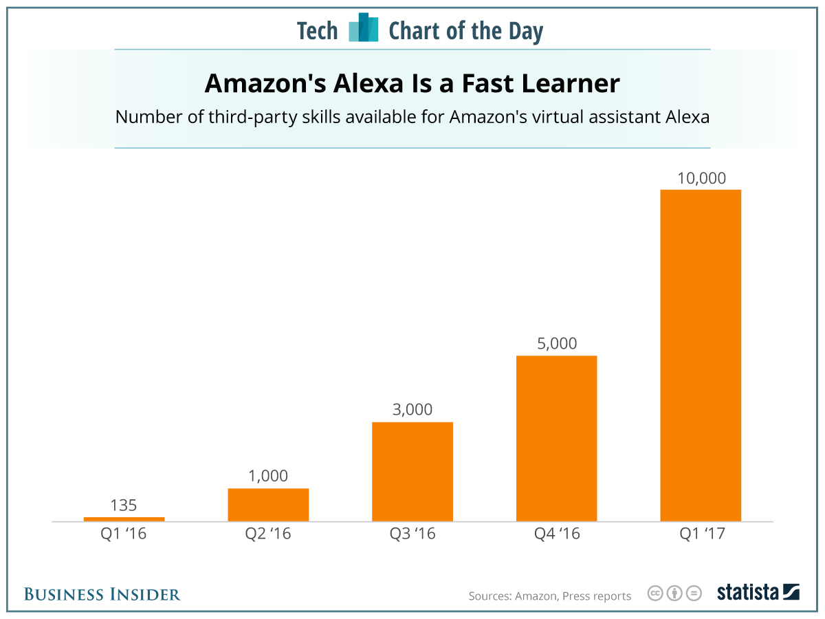市场研究公司Statista提供的调查数据显示,计时、播放音乐、读新闻、闹表、查看时间等,可以说用户最常使用的Alexa支持的功能相当简单。