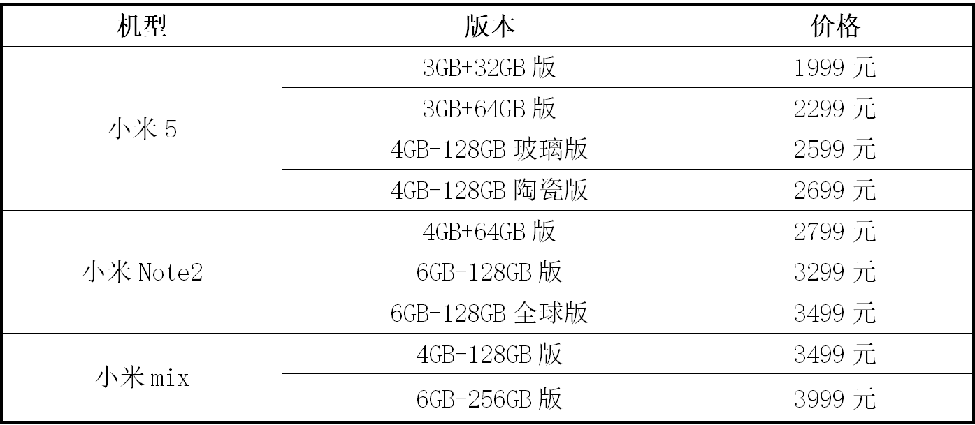 小米面向中高端的产品主要是小米旗舰系列、小米Note系列和小米mix系列,以下为2016年推出的中高端产品款型及价格。