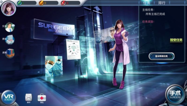 医微讯就推出了一款医疗 +VR的在线手术学习工具柳叶刀客(Surgeek ),出了拍摄VR全景手术视频外,还加入了3D交互模拟,通过娱乐化的游戏来进行模拟外科手术的操作。