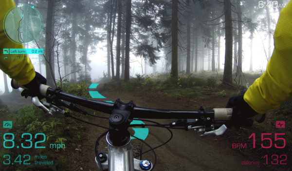当你在户外或野外骑车、跑步或健走时,AR 眼镜可以即时显示心跳、疲劳、卡路里消耗、目标及更多其它更多显示的资讯,例如地图及 GPS 定位等。