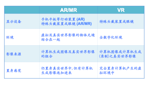 AR 可以在行动装置 (特别是手机 ) 上灵活运用,AR 眼镜可以做到很轻巧,价格也持续下降,因此 AR 应该会成为未来生活不可或缺的一项随身工具,若搭配 AI (Artificial Intelligence) 更像是配备了贴身智能助理。而 VR 主要应用会在创造虚拟的沉浸体验,以成本高、危险、或现实世界不容易取得的经验为主要应用需求。