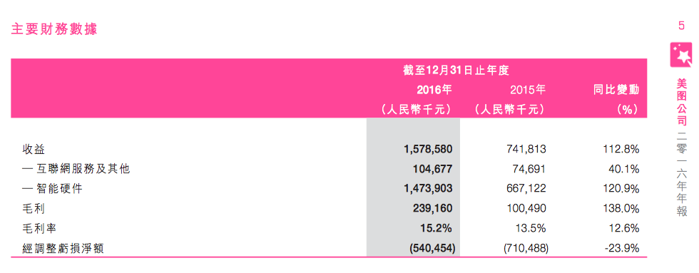 面对这一质疑,蔡文胜表示,是因为会计算法不同,实际净亏损只有5.405亿元人民币。按照美图公司的报告,2016年相比2015年的7.1亿元净亏损,已经有了小幅缩窄。