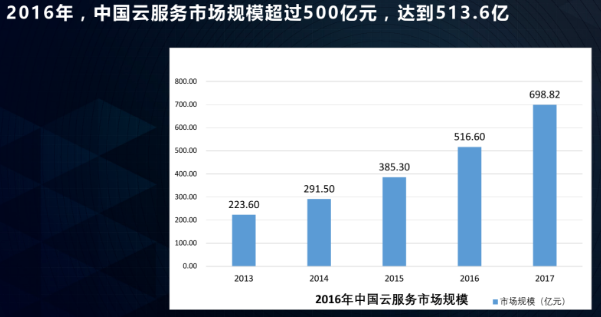 据统计,中国云服务市场的总体规模在2016年达到了516.6亿元,较2015年增长34.08%。但是站在国际角度上,仅仅是2016年Q4全球公有云服务市场就已超过70亿美元(约合482.15亿元)。两相对比,我们可以获知,国内公司对于云服务的接受度还有待提高,市场也并没有真正打开,尚处于发展的初期。