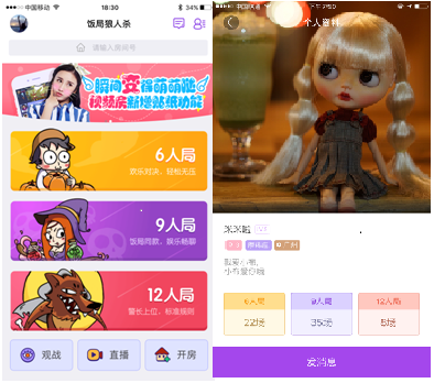 在游戏功能上,《饭局狼人杀》目前基本已经非常完备了,有6人局、9人局、12人局。