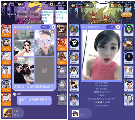 在社交功能上,我们在内测期间发现,玩游戏的年轻女性超过了60%,大专及以上高知人群超80%,这个比例跟《奇葩说》和《饭局的诱惑》的匹配度是非常高的。为了照顾更多女性玩家的游戏体验,产品在设计上发言时会自带美颜功能,还有各式面具,视频可以随时关闭,鼓励更多女性玩家在游戏中露脸,后期还会开发更多礼物的互动玩法。