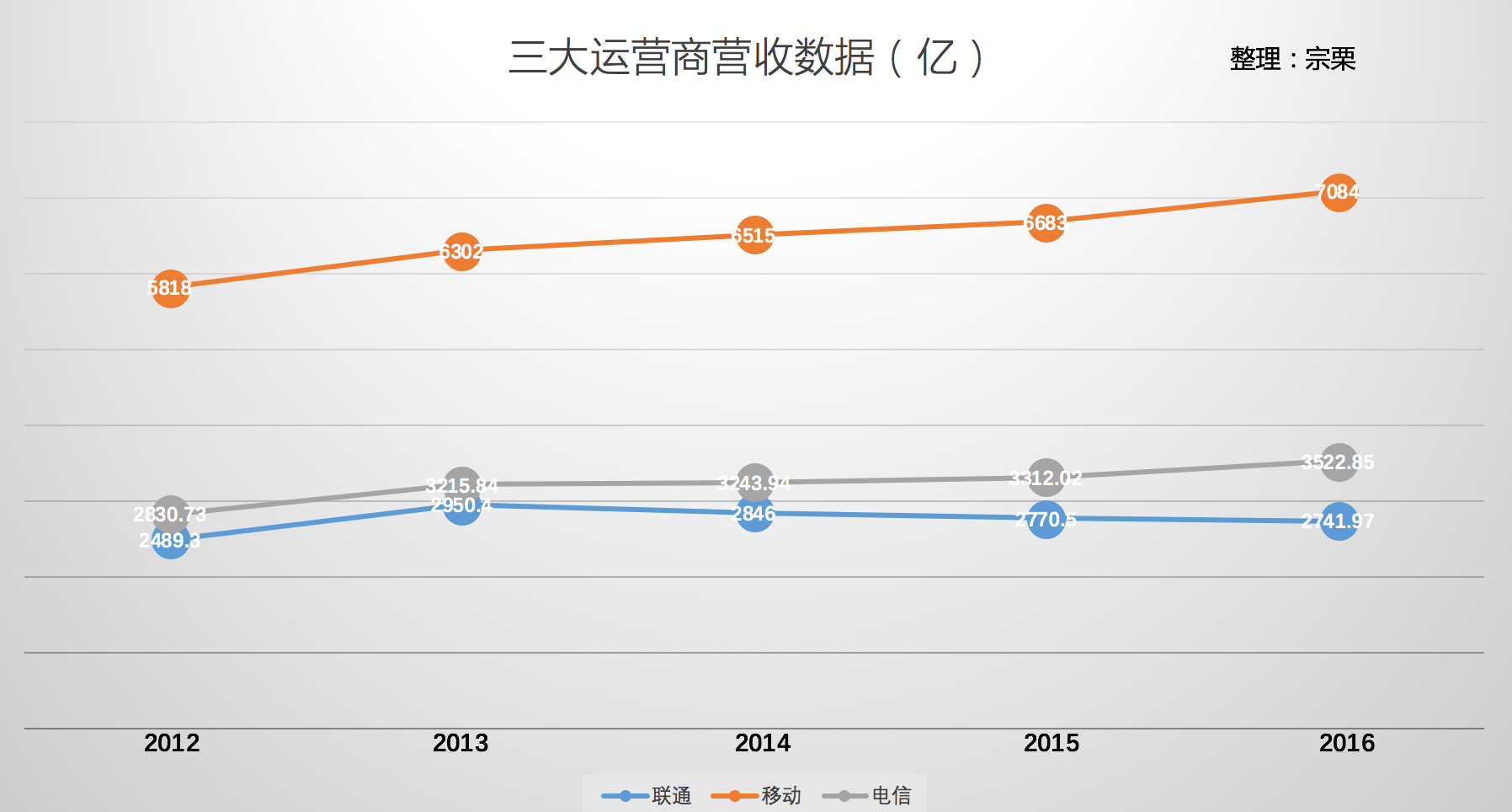 “中国联通这几年确实不太好过,去年(2016)业绩惨淡是有原因的,3G时代的WCDMA有优势,但是4G出来后,中国联通犹豫了一下,最终造成了过去三年时间内的艰难。从2014年开始,中国联通便进入了负增长时期,2016年更是业绩最差的一年。”