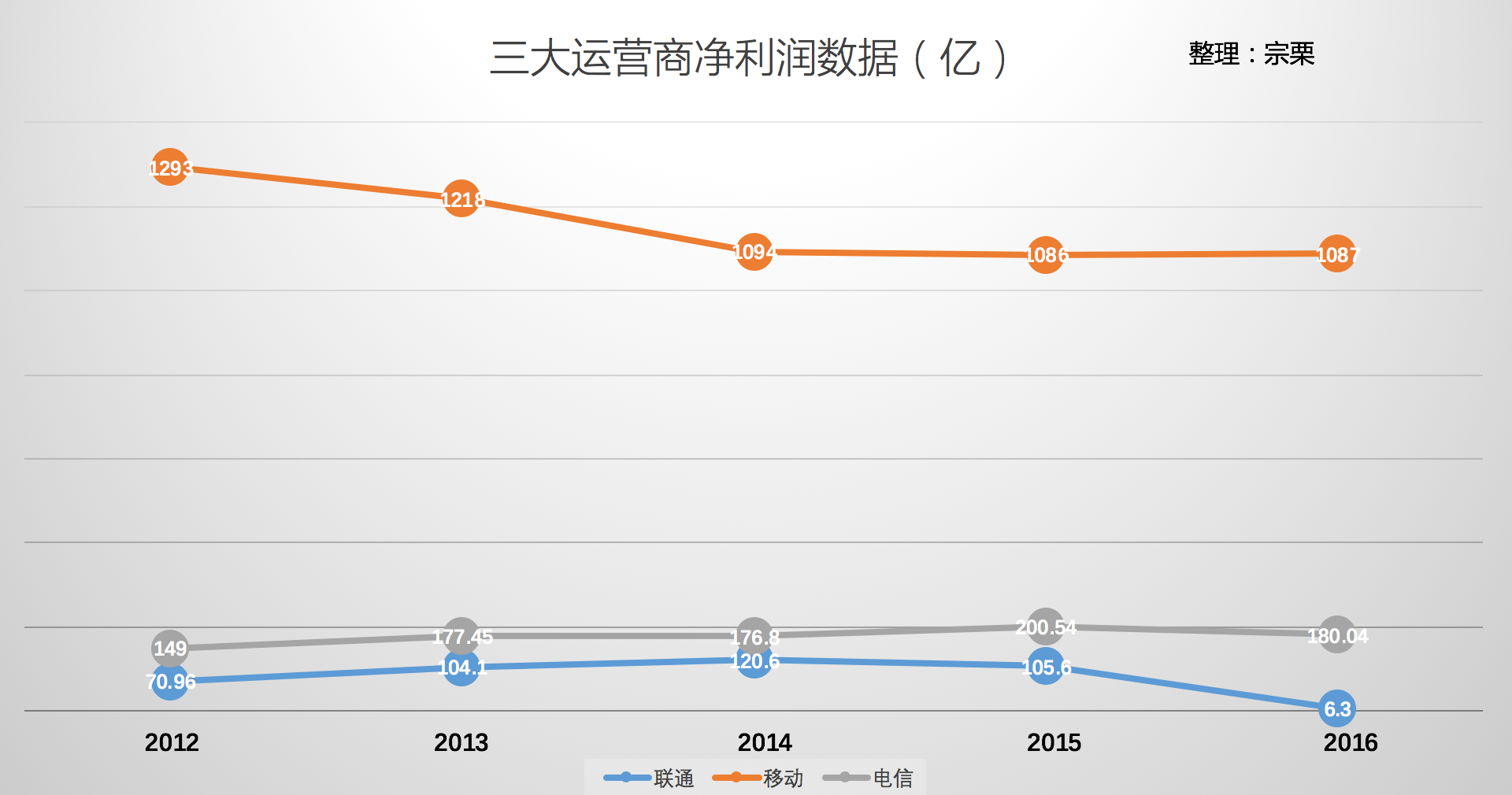 无论是营收、净利润,还是4G用户量,中国移动都一家独大,中国联通惨烈掉队,就连略有优势的联通宽带业务在2016年也被中国移动超过。中国联通面临着移动、固网双重经营压力。