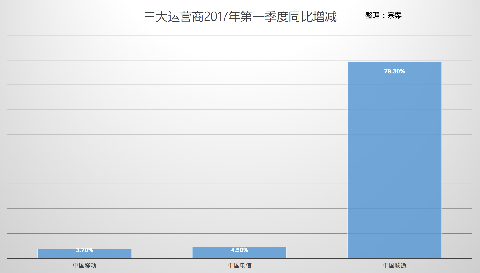 虽然联通2016年各项数据垫底,但前景也并非那么悲观,中国联通在2017年第一季度似乎有反弹之势。