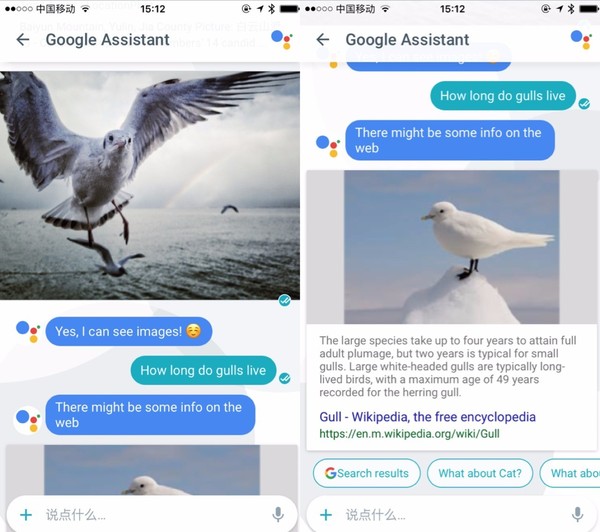并且,谷歌去年发布的Allo(一款智能聊天应用)同样支持对图片的理解,比如我发一张鸟儿的图片它会推给我WiKi介绍,百度对应的产品是度秘,我曾做过一个两者的对比评测,结论是,Google Allo不会比百度度秘聪明多少。