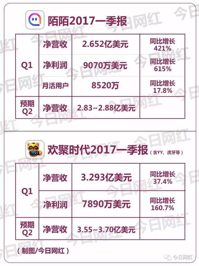昨天下午,陌陌发布了2017年一季度财报,净营收达2.652亿美元,同比增长421%;净利润9070万美元(不按照美国通用会计准则),同比增长615%。营收和净利润双双大增,陌陌又交出了一份非常亮眼的财报。