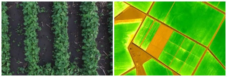 (左:InterlinAir识别田间的杂草,右:给出农田的营养建议)