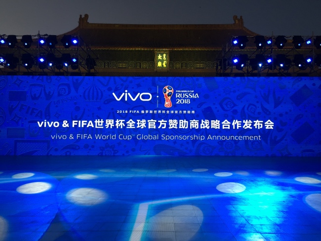 2017年5月31日,vivo宣布与国际足联签下赞助长约。合作周期为2017-2022年,包括2017年联合会杯、2018年俄罗斯世界杯、2021年联合会杯、2022年卡塔尔世界杯。因为卡塔尔世界杯是在2022年年底开赛,正式结束要到2023年年初,这份合同实际要履行到2023年年初才结束。