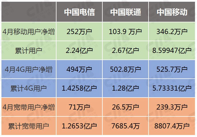 根据工信部公布的相关数据,截至2017年4月末,三家运营商的基本业务数据表明,行业竞争失衡的情况比较突出,中国移动移动用户占比接近64%,4G用户占比接近68%。
