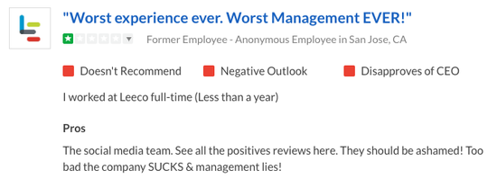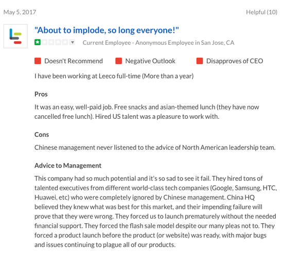 “看看这里所有的正面评价,乐视应该为此感到羞耻。”前员工这样评论道。