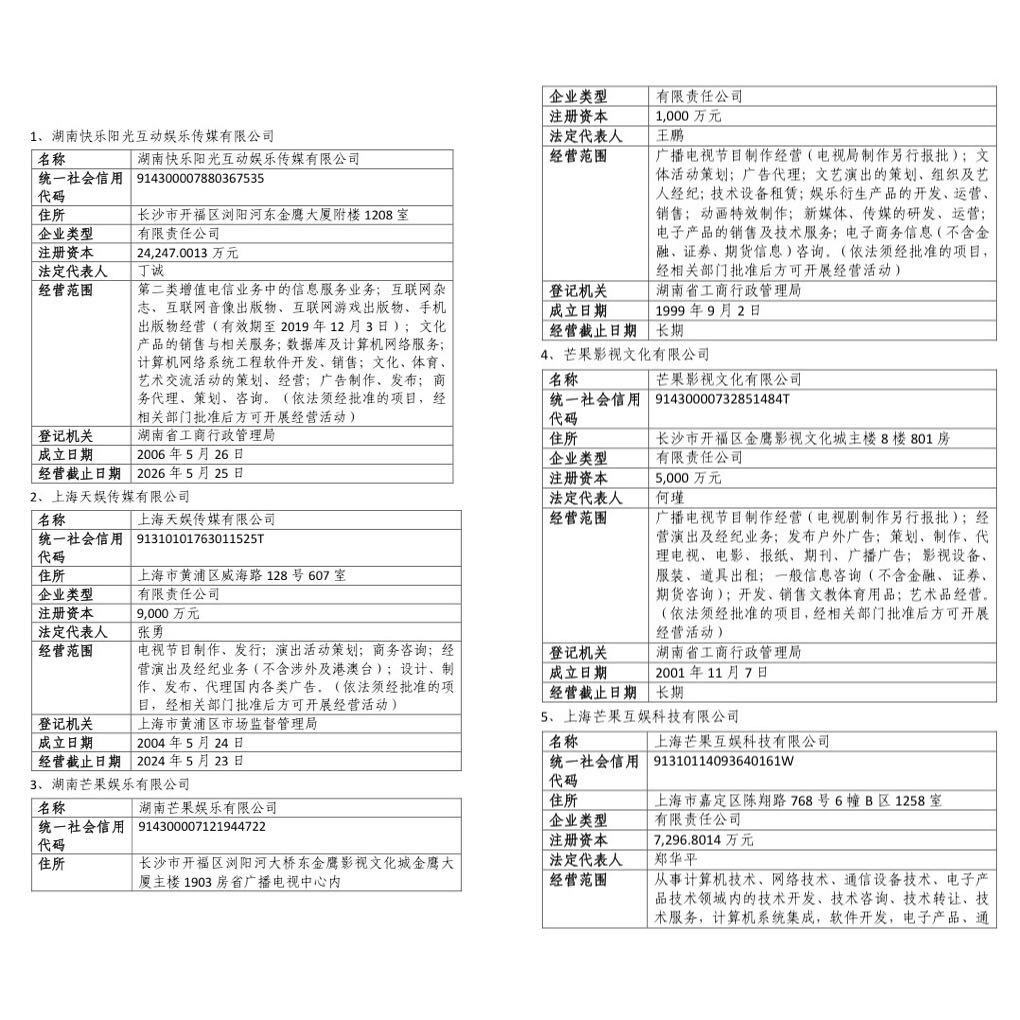 “天娱传媒、芒果影视文化、芒果娱乐三家公司都拥有艺人经纪+内容制作的业务板块;天娱广告则承担广告营销服务;芒果互娱在游戏产业从制作到发行进行全 产业链布局;芒果TV和金鹰卡通则分别布局互联网视频、儿童电视渠道。”