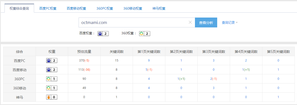 虽然招股书中并未提及“十月妈咪网上商城”组建的确切时间,但其销售数据可以追溯到2013年,也就是说其组建时间至少4-5年,这对于发展迅速的电商平台来说是一个不短的时间,而十月妈咪仍认为其自建平台处在起步阶段,根据流量数据统计平台的数据显示其自建平台(域名:www.octmami.com)在百度与360平台PR权重仅为2,流量较为稀少可见自有平台发展的艰难与缓慢。