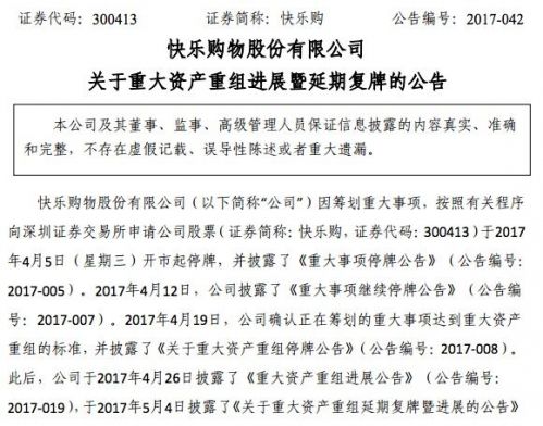 根据公告,此次交易的初步方案为,快乐购通过发行股份及支付现金的方式,购买标的公司股权并募集配套资金。值得注意的是,公告提及,本次交易可能涉及宣传部门、国资监管部门、新闻出版广电主管部门、电信主管部门及文化主管部门等部门的审批、备案。