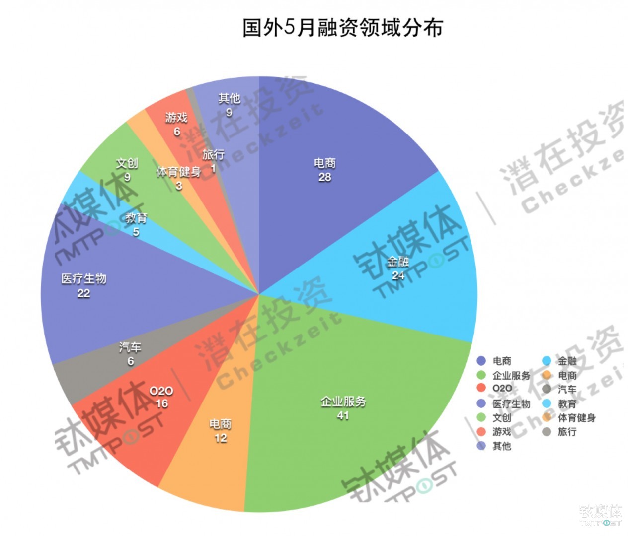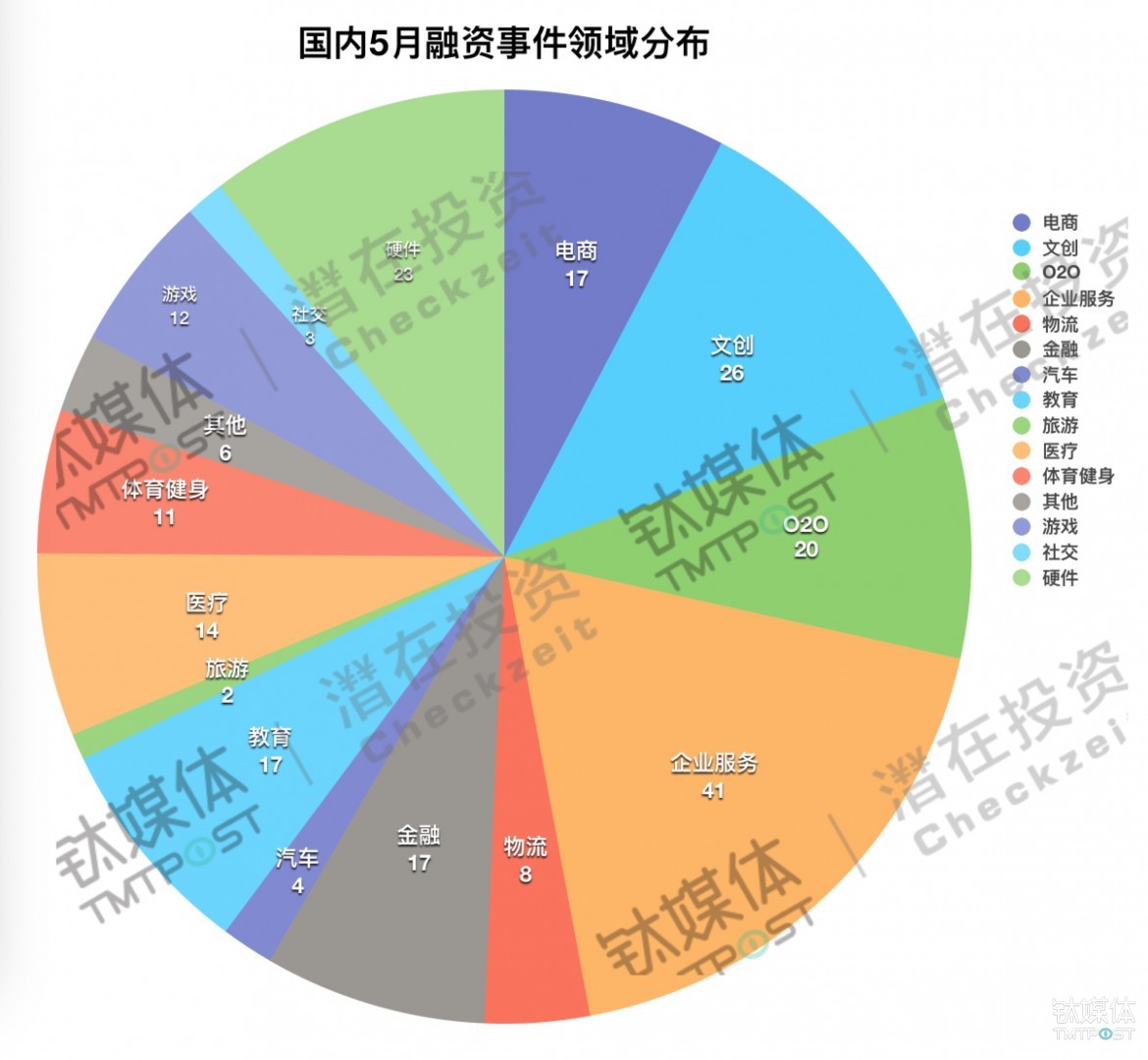 从潜在投资数据库搜集到的资料显示,5月份获投的创企分布如下图: