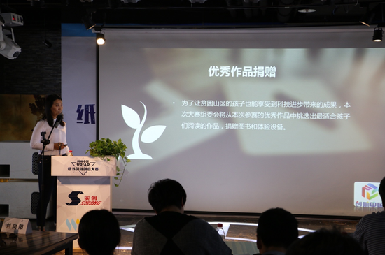 海淀园服体处副处长刘向阳表示,本次大赛是2017创响中国北京站特色活动之一,该活动将是一场科技与传统纸媒的碰撞,以纸质书为主题,制作“纸质书籍+VR/AR”的相关原创内容和展示作品。将建筑、历史、园林景观、教材、科普等传统元素与现代最前沿的VR科技相融合, 为传递和展现纸书文化提供了新的科技展现形式,具有非凡的教育意义和推动社会进步的意义,真正让纸书文化活起来,让人很期待。