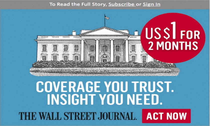 但是,最近这种“福利”却被《华尔街日报》打破。之前,用户在谷歌的新闻搜索结果中点击《华尔街日报》的链接,就可不受付费墙限制而自由阅读全文。然而从今年2月始,《华尔街日报》取消了这一特权。