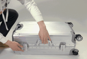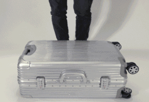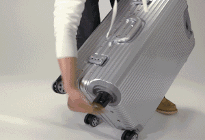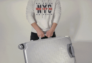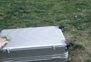 撞完之后,把拉杆箱在地上原地转了两圈,