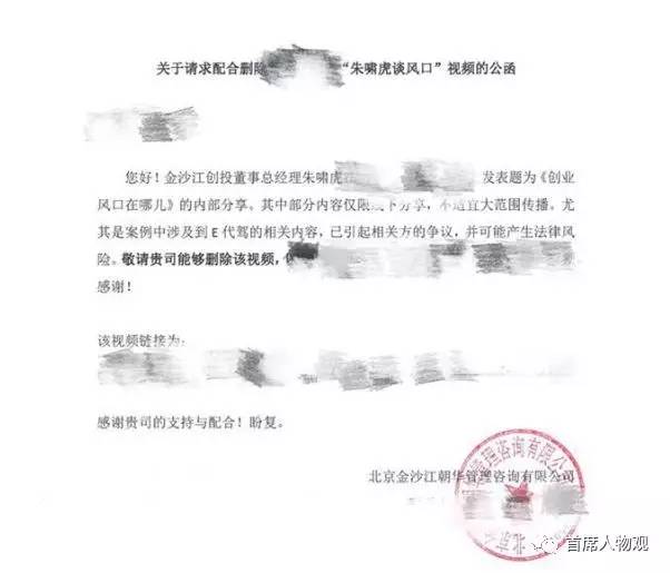 不过,最近他正在努力“收回”一段关于创业风口的演讲视频。其中,朱啸虎谈及E 代驾,称其“曾经是很赚钱的公司,滴滴做进来以后,三个月把他们也给打趴下了”。