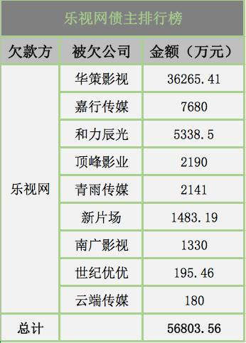 而乐视网在影视公司的最大“债主”当属华策影视。在华策影视的年报中,对乐视网的应收账款达到3.63亿元,位列第二大应收账款方。
