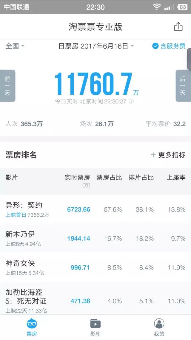 上映首日,《异形》排片38.1%,截止6月16日晚10:30,票房刚过6723.66万,表现平平。