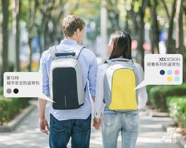 背包后侧可以搁置钱包、钥匙、证件等物品。