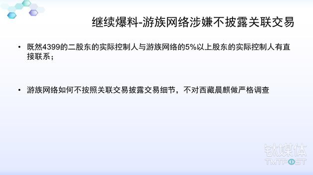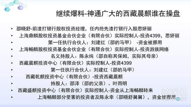 4、西藏晨麒系邵晓舒控制的企业,邵晓舒以叶雨明为马甲参与4399、游族网络的管理对其经营产生重大影响,这样的交易怎么不是关联交易,这样的关联交易怎么能不审查西藏晨麒如何取得的四三九九24%的股权,7.2亿的注册资金是否是真实的入资,30亿的估值从和而来,这难道不是赤裸裸的利益输送;