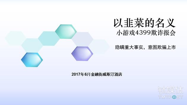 钛媒体快讯 | 6月20日消息:今日上海鼎麟股权投资基金在北京召开发布会,实名举报页游运营平台四三九九(4399)大股东蔡文胜涉嫌偷逃国家税款3.6亿元人民币。举报人称4399隐瞒重大事实,意图欺骗上市。