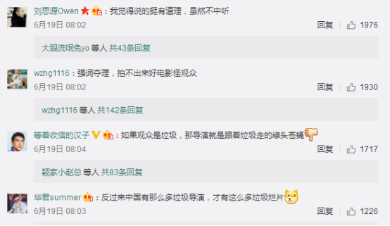 此话一出,很快在网上引发了热烈的讨论。有网友认为,冯导说的有道理,话糙理不糙。也有网友认为,这是一个“甩锅”的说法。国产烂片横行,导演同样有责任,不能完全责怪观众的品味差。甚至有网友回怼冯小刚——“说得好像你没拍过垃圾电影一样。”
