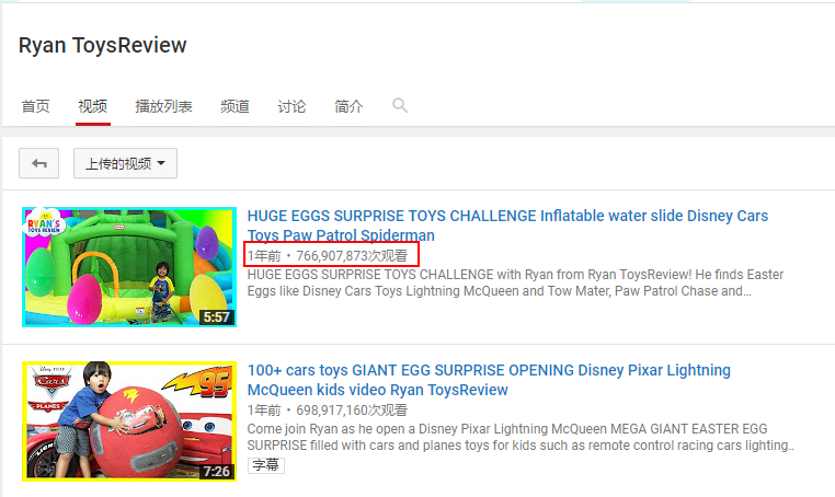 Ryan ToysReview单次播放量达7亿