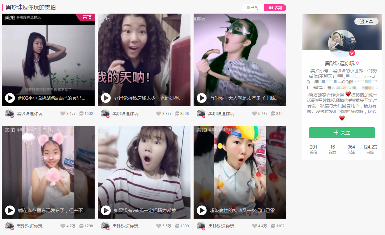 “黑珍珠逗你玩”的美拍首页