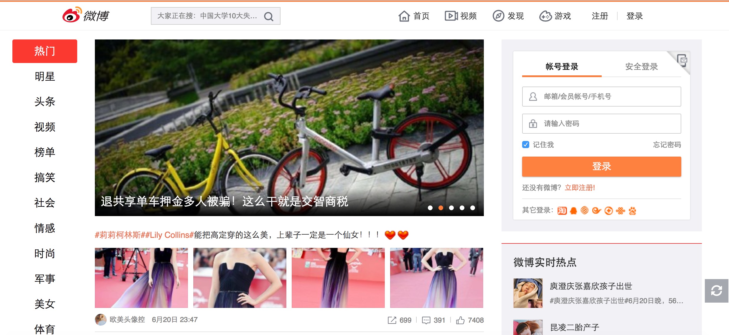 之所以微博股价暴涨,关键原因有且只有一个,那就是:内容化。这次“视听节目关停风波”也与这一战略息息相关,因为微博要引入更多内容,视听内容自然不可或缺。现在微博的内容战略还在继续推进,这几天打开微博网页版,还以为点错了——因为页面跟今日头条网页版太像,不信看图: