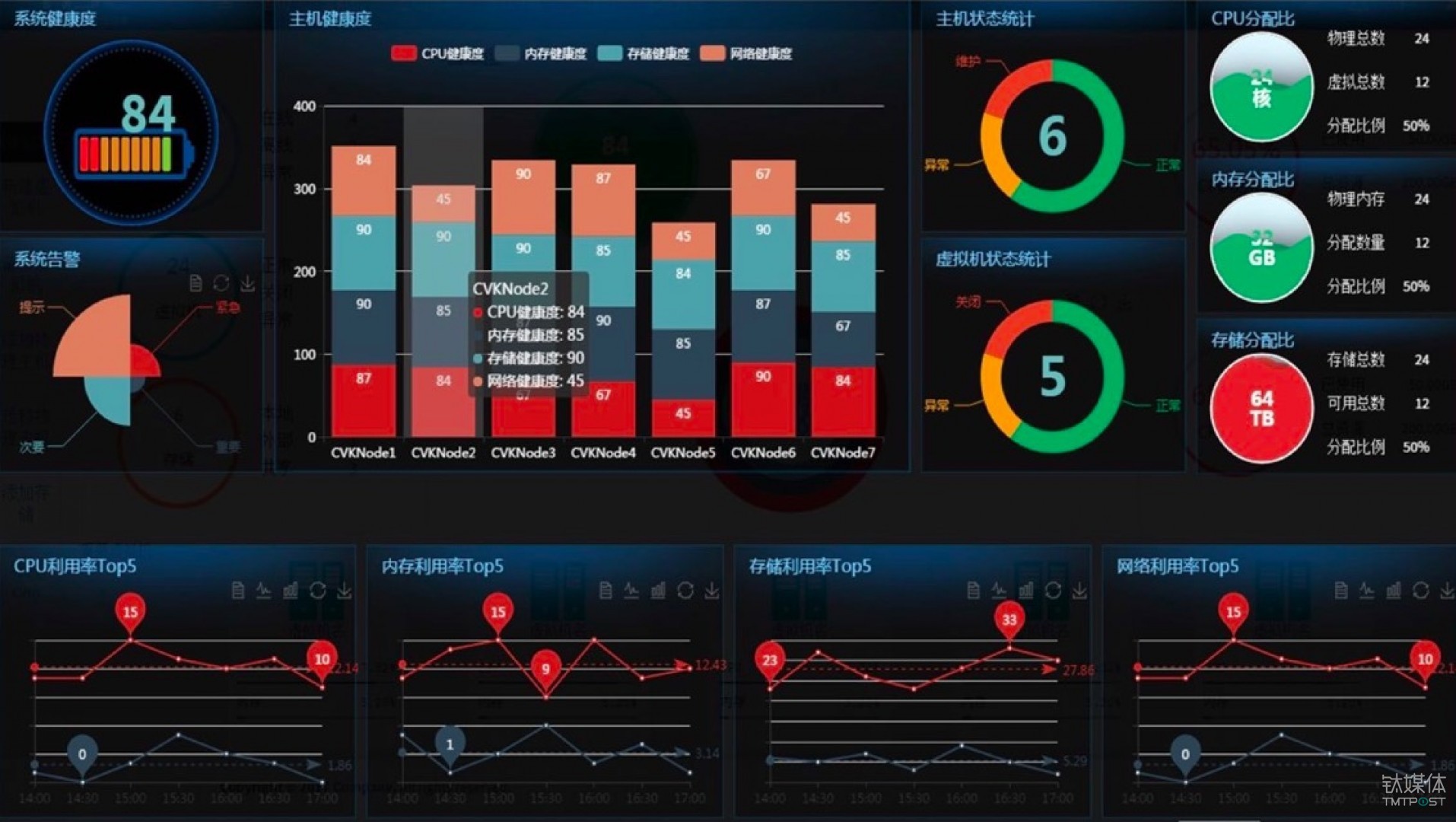 我们的New UIS统一的管理平台,实际上是真正的通过一个统一的中文管理界面将整个超融合系统以及集群内虚拟机、存储、计算以及网络资源,所有当前资源的利用率、资源分配、资源状态以及告警情况都做了统一的展现,这实际上给了用户在管理方面提供了极大的便利。