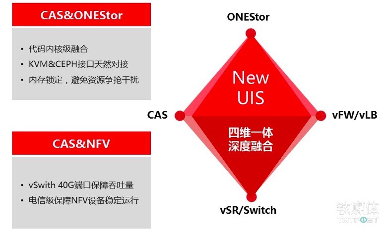 第二点就是四维一体,什么叫四维一体呢?也就是将计算、存储、网络和安全这四个IT的资源进行深度的内核级融合和开发,特别是今年会在计算和存储方面做很大的更新和产品的发布。
