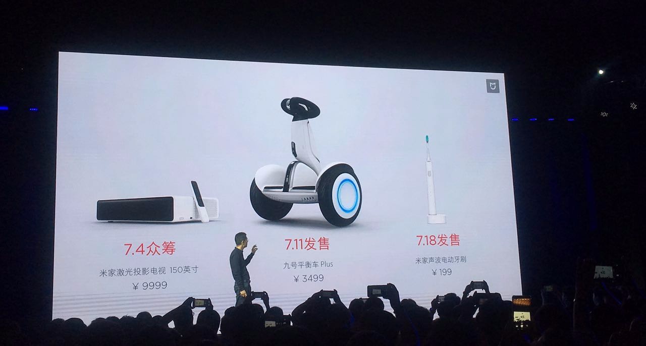 6月28日,小米公司旗下米家品牌在北京召开米家2017年度发布会,共发布了三款新品——米家激光投影电视150英寸、九号平衡车Plus以及米家声波电动牙刷。